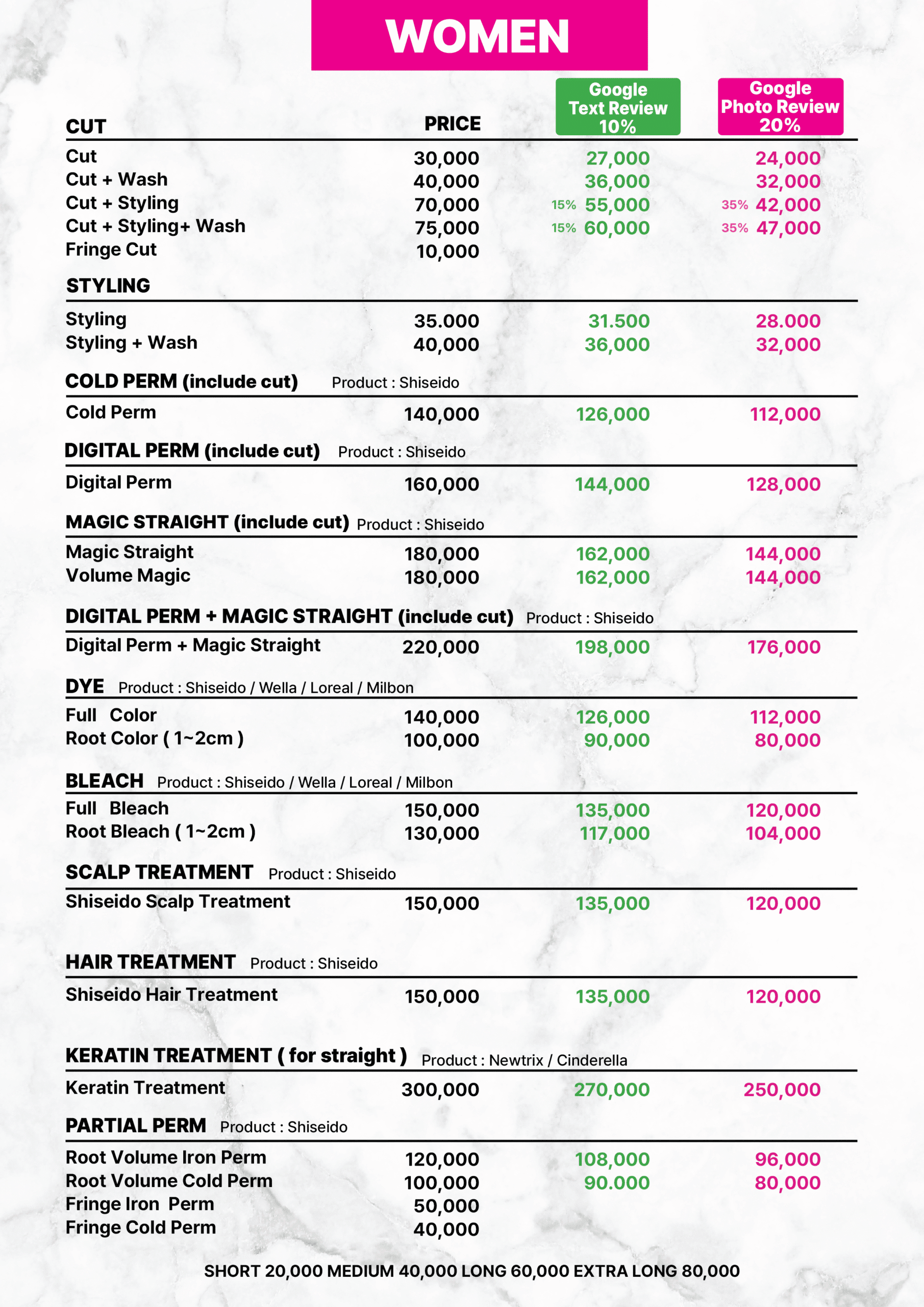 ร้านทำผมเกาหลีโซล ราคาบริการ